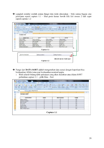 o Blok seluruh bidang table pekerjaan yang akan diurutkan atau didata SORT