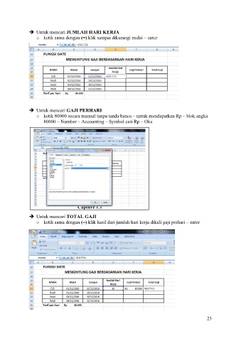 o ketik sama dengan (=) klik hasil dari jumlah hari kerja dikali gaji perhari – enter
