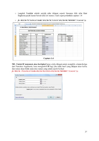 o fx =IF(C28>75;"SANGAT BAIK";IF(C28>70;"LULUS";IF(C28>50;"REMIDI";"GAGAL")))