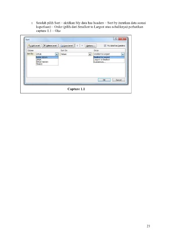 o Setelah pilih Sort – aktifkan My data has headers – Sort by (urutkan data sesuai