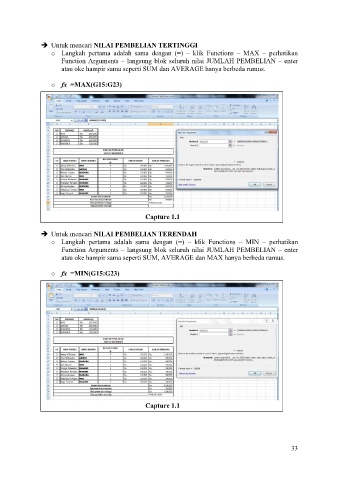o Langkah pertama adalah sama dengan (=) – klik Functions – MAX – perhatikan