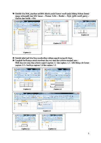 Blok dua row atau dua column seperti capture 1.1 dan capture 1.2 – klik Merge & Center