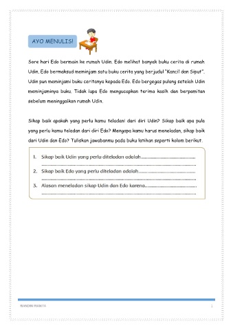meminjaminya buku. Tidak lupa Edo mengucapkan terima kasih dan berpamitan