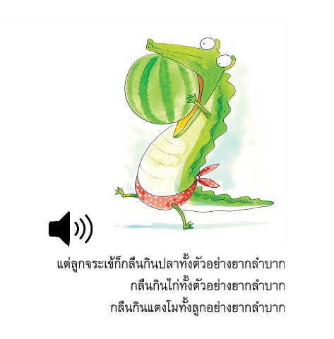 แต่ลูกจระเข้ก็กลืนกินปลาทั้งตัวอย่างยากลำบาก กลืนกินไก่ทั้งตัวอย่างยากลำบาก กลืนกินแตงโมทั้งลูกอย่างยากลำบาก