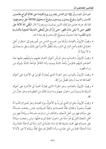 ِ لهأ رارقتسا لىإ مهروبُق نم سانلا ِ جورخ نم الهوأو ةمايقلاب ُنميلإا بيجو •