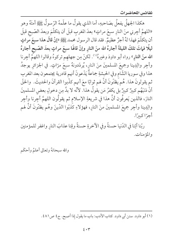 َ لبق ِ حبصلا َدعبو مّلكتي نأ َ لبق برغلما َدعب »تارم عبس رانلا نم نيرجأ مهللا«