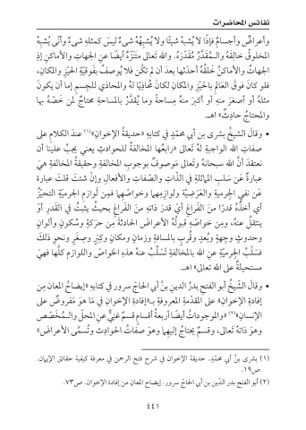 لىع ِملاكلا َدنع »ناوخلإا ُةقيدح« هباتك في دممح بيأ نب ىشب ُ خيشلا َ لاقو