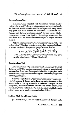 kepadamu, wahai waliyullah.' Apabila dia tidak takut bahwa dia