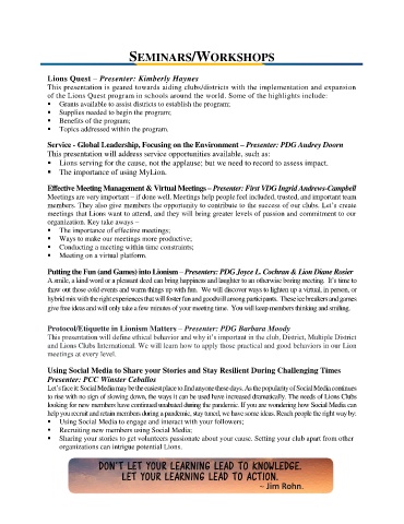meetings that Lions want to attend, and they will bring greater levels of passion and commitment to our