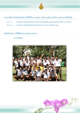 ผลงานทประทบใจ/เกยรตประวัตทไดรบการยกยอง /หรอแรงบันดาลใจในการทํางาน/หรอขอคด