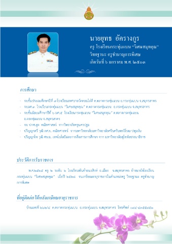 - จบมศ.3 โรงเรียนกระทุมแบน “วิเศษสมุทคุณ” ต.ตลาดกระทุมแบน อ.กระทุมแบน จ.สมทรสาคร