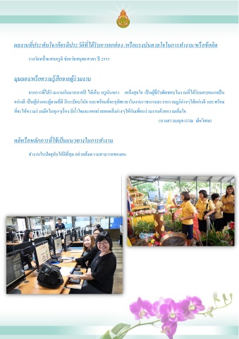 ผลงานทประทบใจ/เกยรตประวัตทไดรบการยกยอง /หรอแรงบนดาลใจในการทํางาน/หรอขอคด