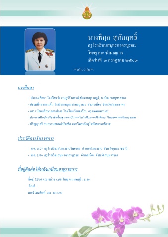 - พ.ศ. 2530 ครูโรงเรียนสมทรสาครบรณะ อําเภอเมอง จังหวัดสมทรสาคร