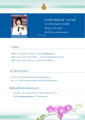 - วุฒที่จบ ศษบ. สาขาวิชา บรหารการศกษา สถาบัน มหาวิทยาลัยสโขทัยธรรมาธราช