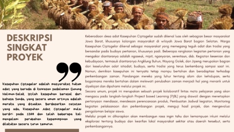 DESKRIPSI Keberadaan desa adat Kasepuhan Ciptagelar sudah dikenal luas oleh sebagian besar masyarakat