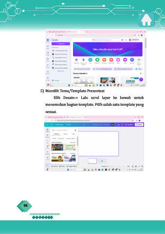 5) Memilih Tema/Template Presentasi Klik Desain-> Lalu scrol layar ke bawah untuk menemukan bagian template. Pilih salah satu template yang sesuai. 96