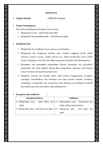 1.2 Mengetahui sifat – sifat kubus dan balok 2.1.1 Memahami sifat – sifat kubus dan
