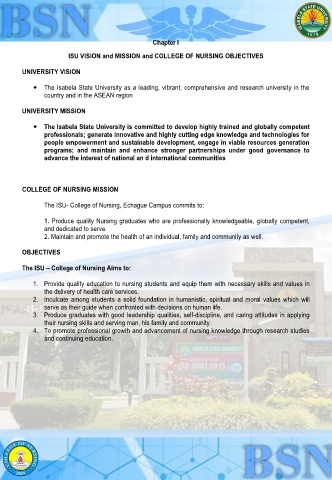 ISU VISION and MISSION and COLLEGE OF NURSING OBJECTIVES