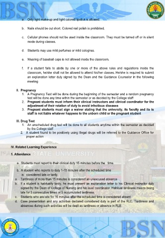 1. An unscheduled drug test will be done to all students anytime within the semester as decided