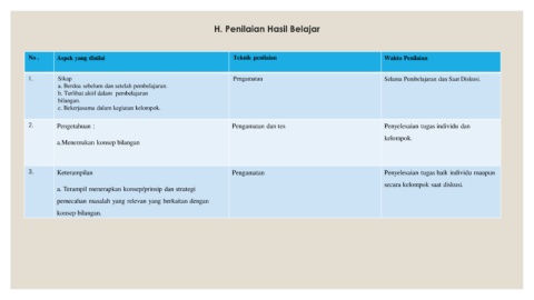 No . Aspek yang dinilai Teknik penilaian Waktu Penilaian