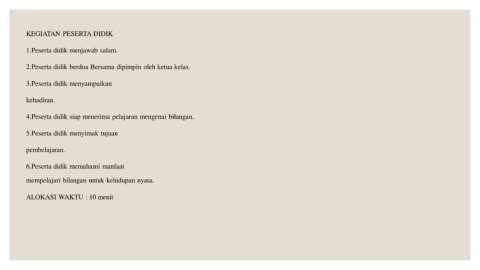 4.Peserta didik siap menerima pelajaran mengenai bilangan.