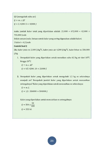 maka jumlah kalor total yang diperlukan adalah: 21.000 + 672.000 + 42.000 =