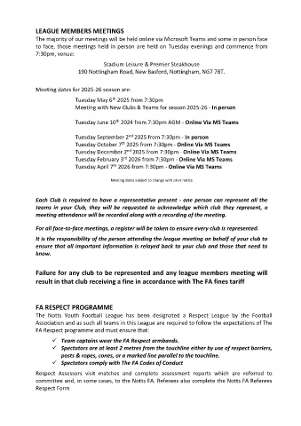 It is the responsibility of the person attending the league meeting on behalf of your club to