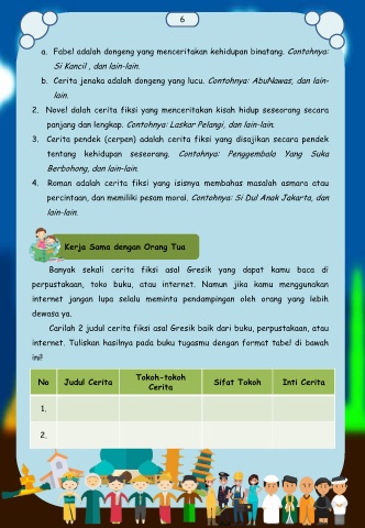 a. Fabel adalah dongeng yang menceritakan kehidupan binatang. Contohnya: