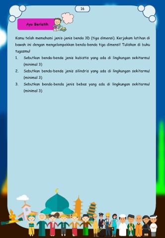 Kamu telah memahami jenis-jenis benda 3D (tiga dimensi). Kerjakam latihan di