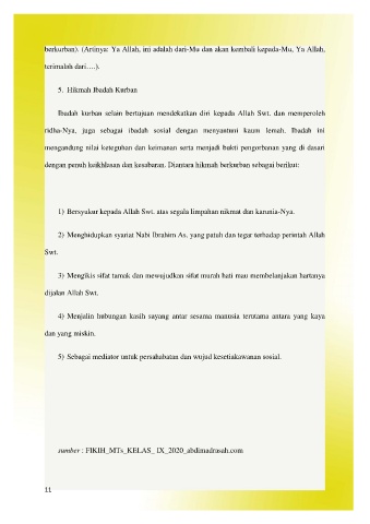 dengan penuh keikhlasan dan kesabaran. Diantara hikmah berkurban sebagai berikut: