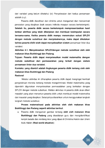 SPLDV dengan metode substitusi. Melalui aktivitas ini peserta didik akan diberi