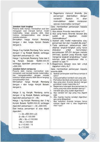 Jawaban tidak lengkap Guru memberikan pertanyaan kepada