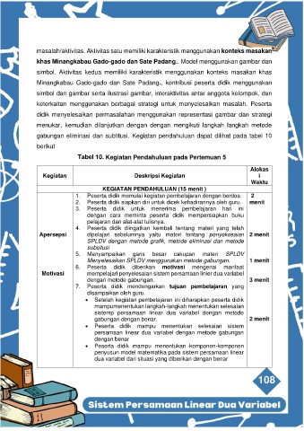 gabungan eliminasi dan subtitusi. Kegiatan pendahuluan dapat dilihat pada tabel 10