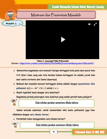 Selain metode subsitusi, untuk menentukan nilai suatu polinomial juga bisa