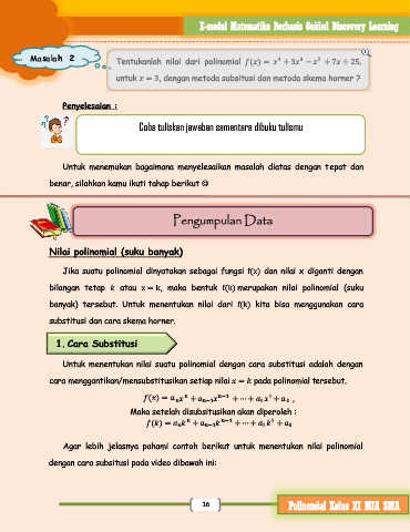 Jika suatu polinomial dinyatakan sebagai fungsi f( ) dan nilai x diganti dengan