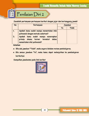 Bila ada jawaban "Tidak", maka segera lakukan review pembelajaran,