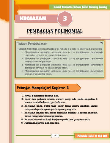 1. Menyelesaikan pembagian polinomial oleh ( − ) menggunakan cara/metode