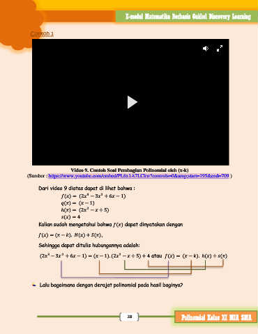 Video 9. Contoh Soal Pembagian Polinomial oleh (x-k)