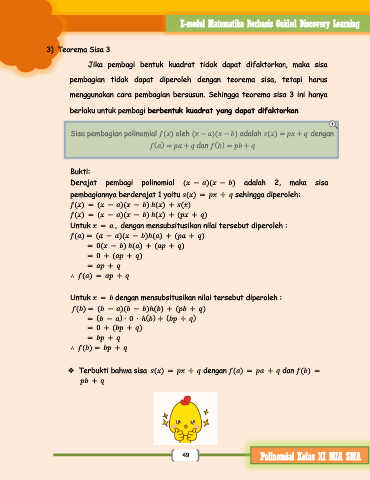 menggunakan cara pembagian bersusun. Sehingga teorema sisa 3 ini hanya