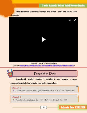 Untuk memahami penerapan teorema sisa diatas, amati dan pahami video