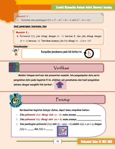 Sisa pembagian polinomial ( ) oleh ( − )( − ) adalah ( ) = + dengan