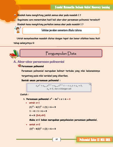 Maka x=1 bukan merupakan penyelesaian persamaan polinomial.