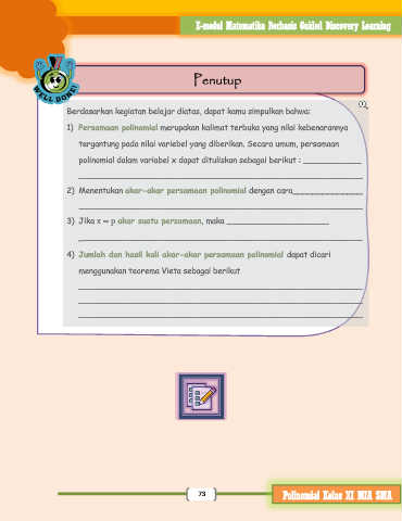 1) Persamaan polinomial merupakan kalimat terbuka yang nilai kebenarannya