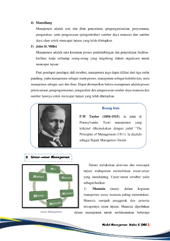 Unsur Manajemen dalam manajeman untuk melaksanakan beberapa