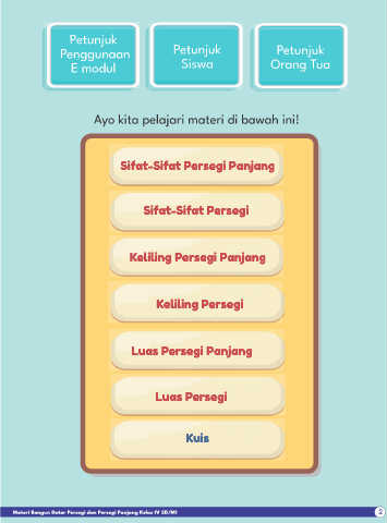 Sifat-Sifat Persegi Panjang Sifat-Sifat Persegi Keliling Persegi Panjang Keliling Persegi Luas Persegi Panjang Luas Persegi Kuis 2