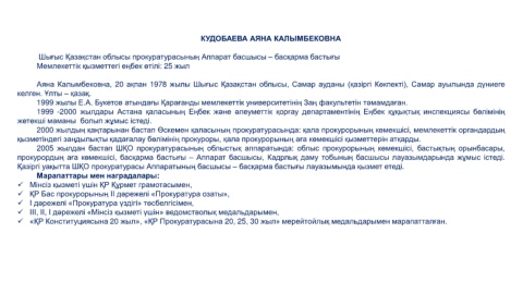 ✓ ҚР Бас прокурорының II дәрежелі «Прокуратура озаты»,