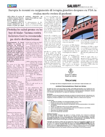 residente di Aruba cu • E vacuna no ta reco- cambio den fortuna pa e pro- E decision di FDA dialuna