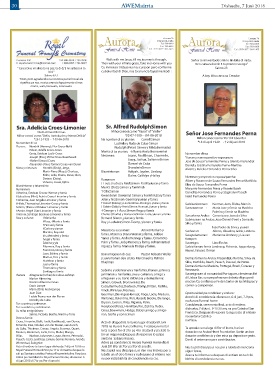Winterdaal, Solognier. Adres pa condolencia Aurora Funeral Home dia 8