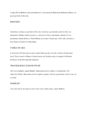 suficiente likides. Banconan tin bon capital y propio. Overal e presidente a bisa cu tur cos