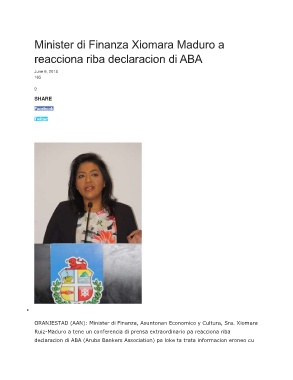 declaracion di ABA (Aruba Bankers Association) pa loke ta trata informacion eroneo cu
